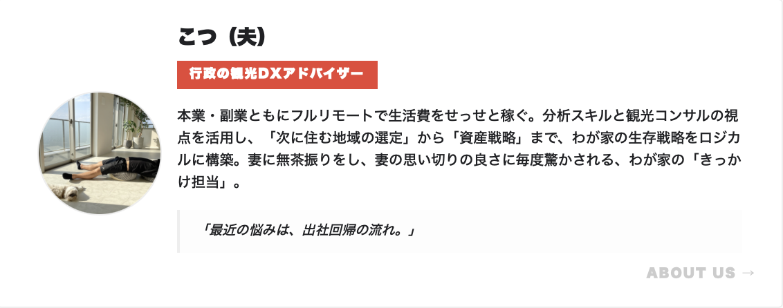 移動前提の暮らしを阻む最大の壁は、仕事。フルリモートの出来なかった妻(こやなぎ)は、大学卒業から10年働いた仕事を辞めることとしました。代わりに、私(こつ)がフルリモート可能な副業を追加することで、生活を繋いでいます。
