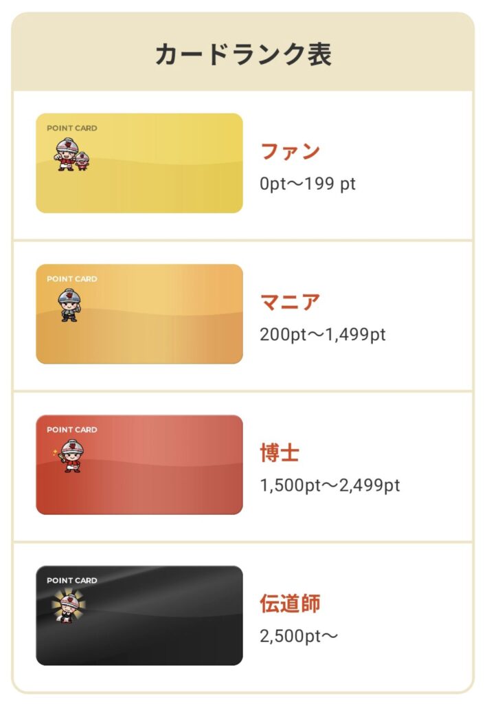 山岡家アプリ内で貯めたポイント数によって会員ランクが決まります。