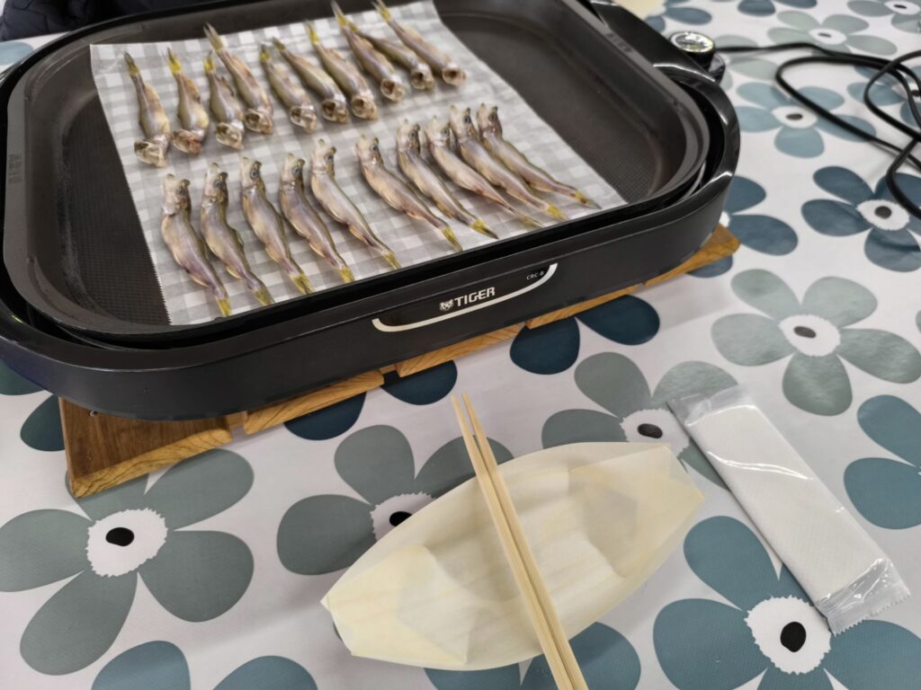 店員さんがシシャモをホットプレートに並べて焼いてくださいました!