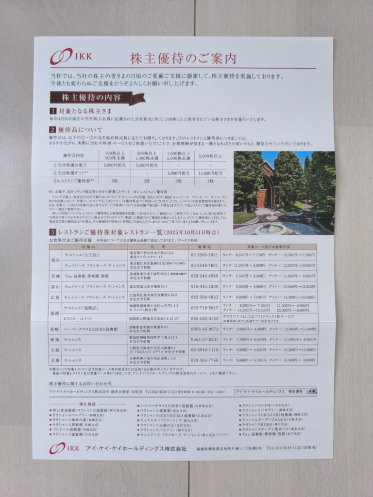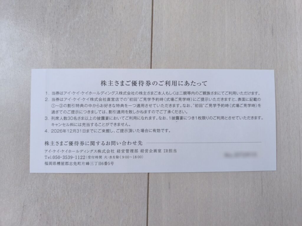 アイ・ケイ・ケイホールディングス(2198)の株主優待が届きましたので、