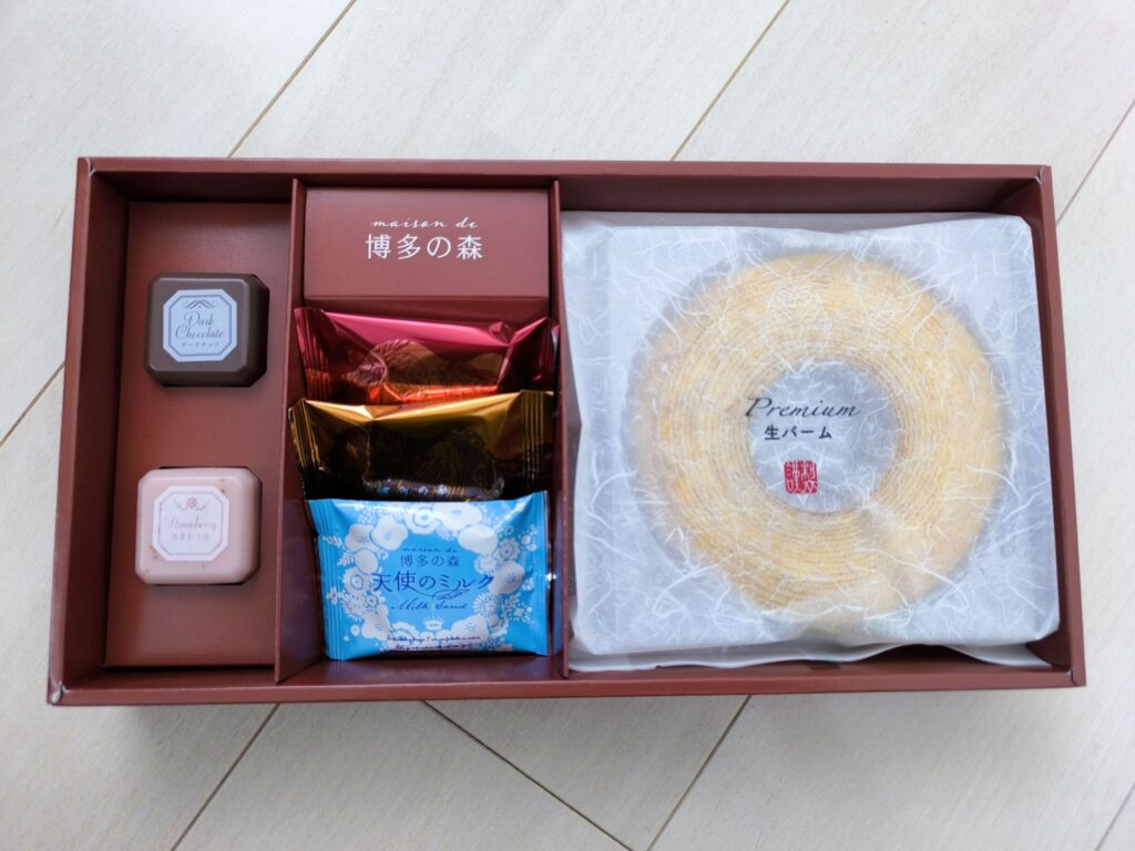 博多の森(天使のミルク・生キャラメルサンドショコラ・生キャラメルサンドあまおう苺)の合計6点です。