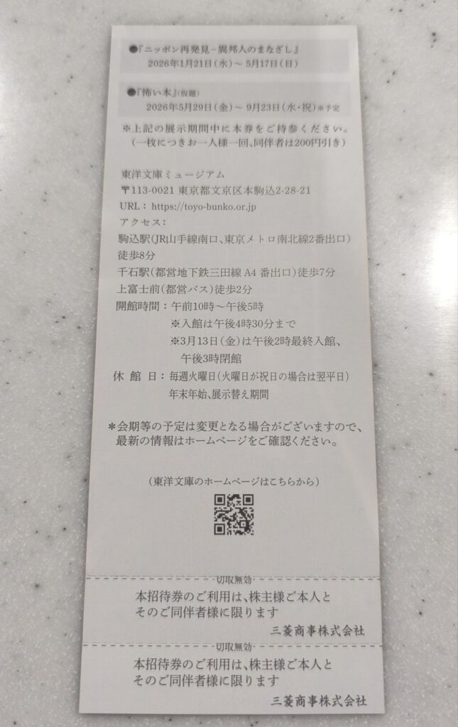 - 「東洋文庫ミュージアム」無料ご招待券(2026.1.21〜2026.9.23まで有効)