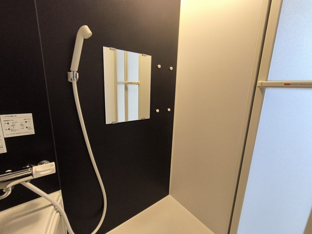 浴室には、水分拭き上げ用のマイクロファイバータオルだけ。