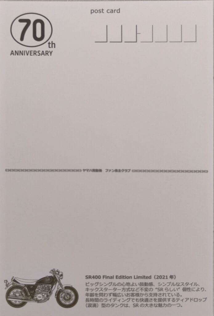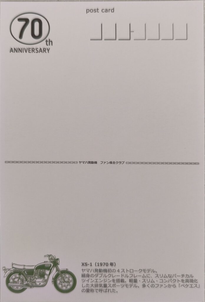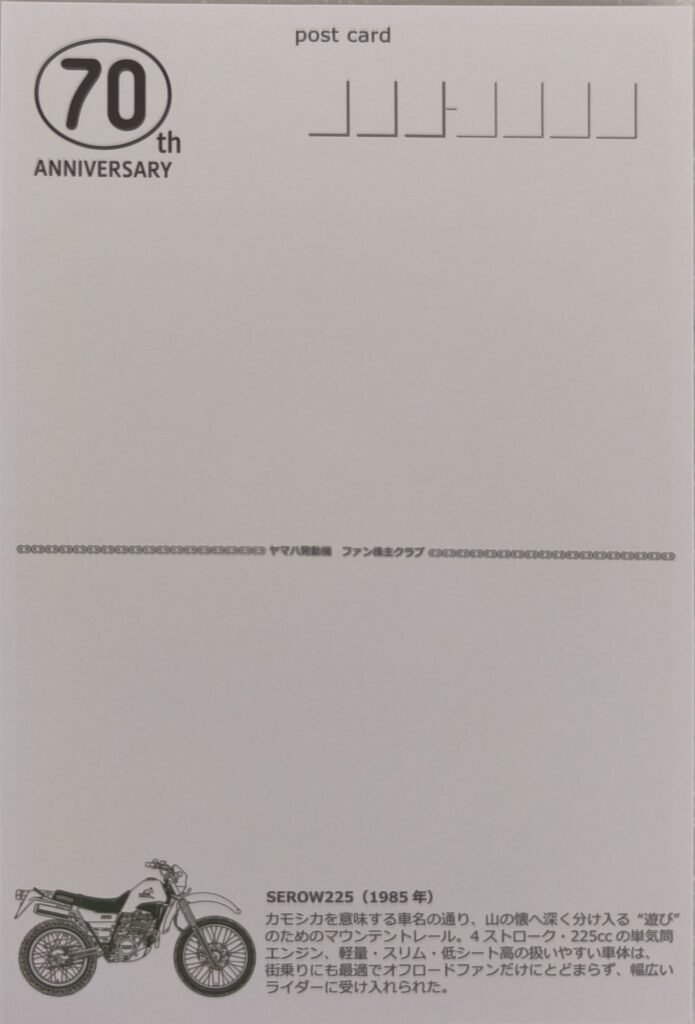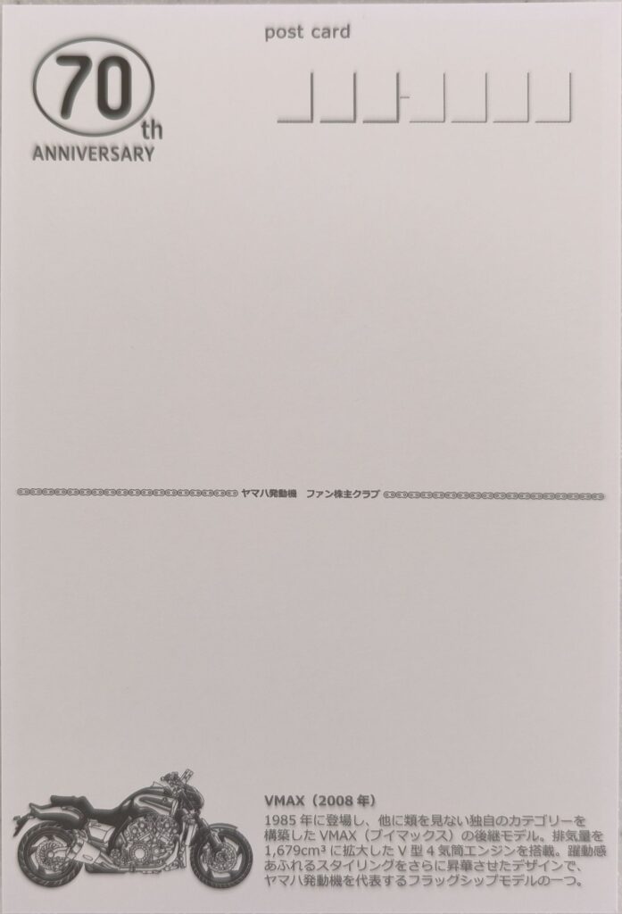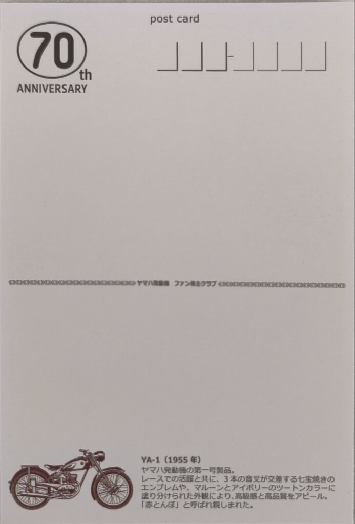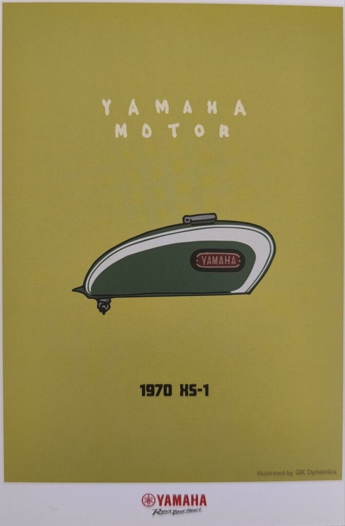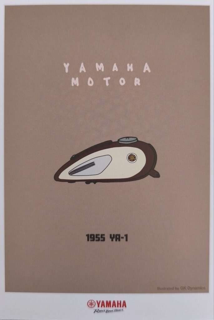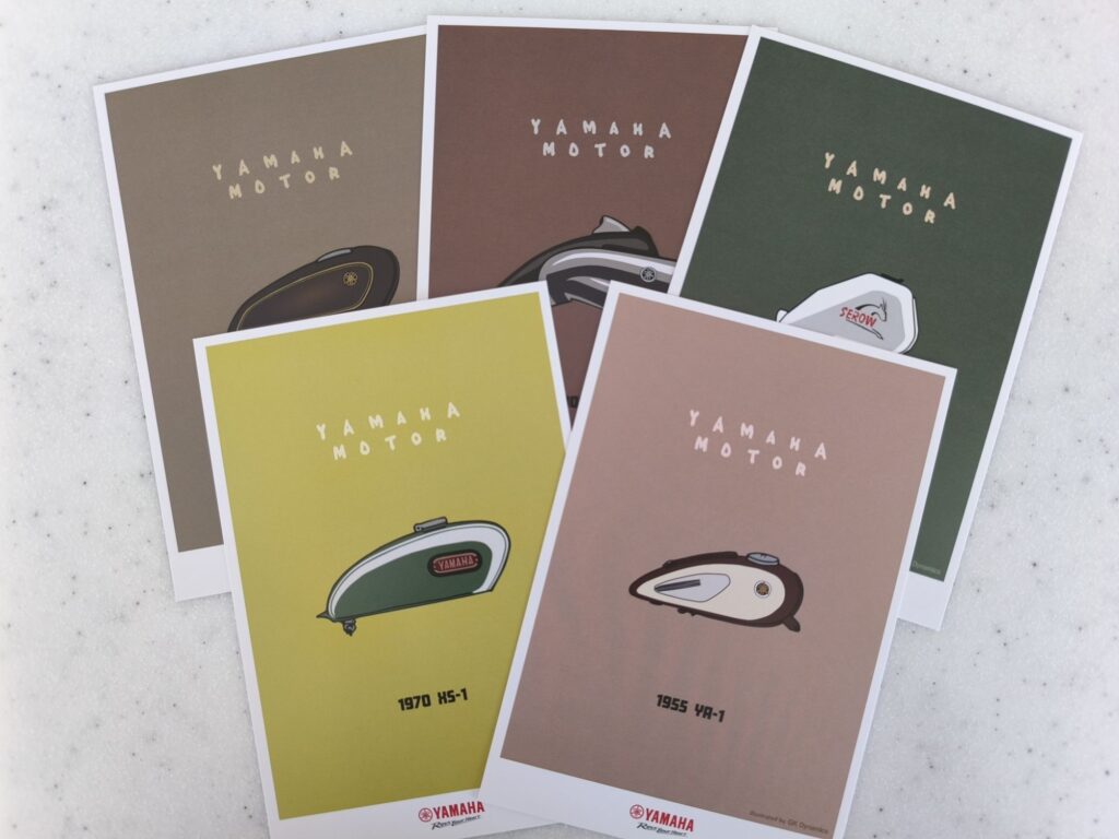燃料タンクのイラストでくすみカラーが可愛いデザインですよね!ヤマハ発動機の創業以来のパートナー「株式会社GKダイナミックス」が手掛けた特別なポストカードとなっています。
