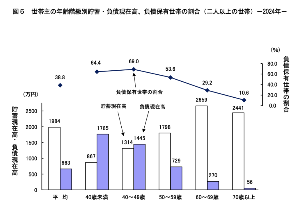 ①「持ち家、ローン完済世帯」が平均を下げる