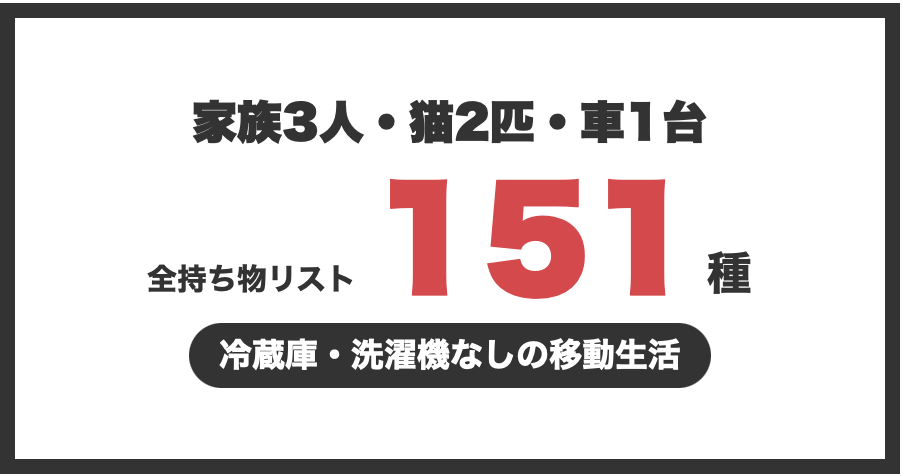ミニマリストの持ち物リスト全151種|家族3人と猫2匹、車1台で「住み替える」暮らし(2026年版)